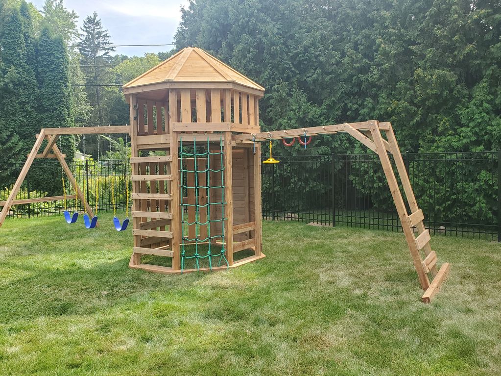 Designed for older kids with serious desire for climbing and developing Ninja skills! Starts at $6995 without roof. $7595 as pictured.